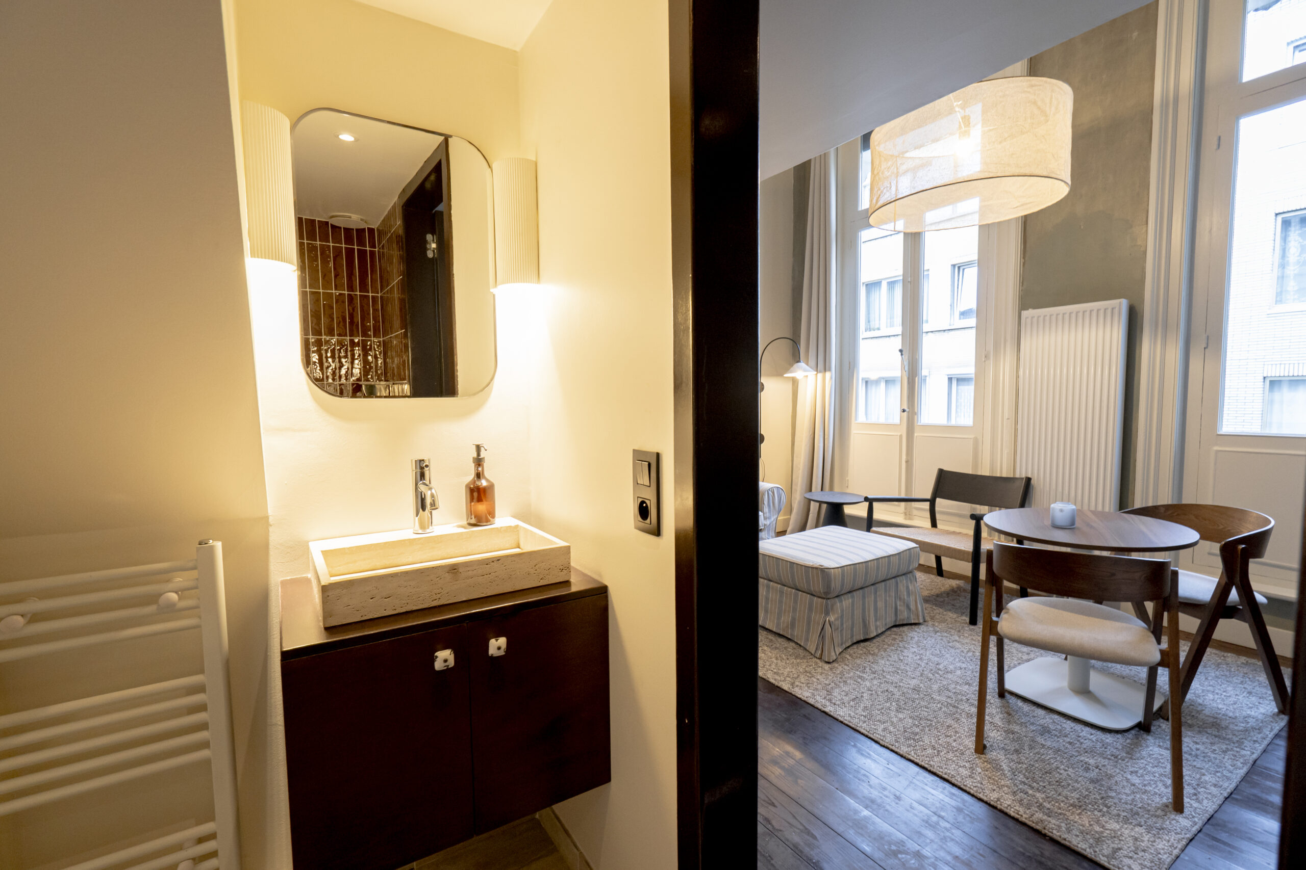 Old Brick is a beautifully renovated building of over 600 m2, located at Oudesteenweg 108 in a quiet neighborhood close to shops, public transport, and Antwerp Central Station.